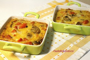 Sbattete le uova in una bowl con la panna, il latte, il parmigiano sale e pepe. Unite al tutto la zucca e i funghi e mescolate bene. Ungete delle cocottine monoporzione e versateci il composto, cospargetele con la fontina grattugiata grossolanamente e passatele in forno già a 180 gradi per 30 minuti a 170 gradi. Servite appena sfornate