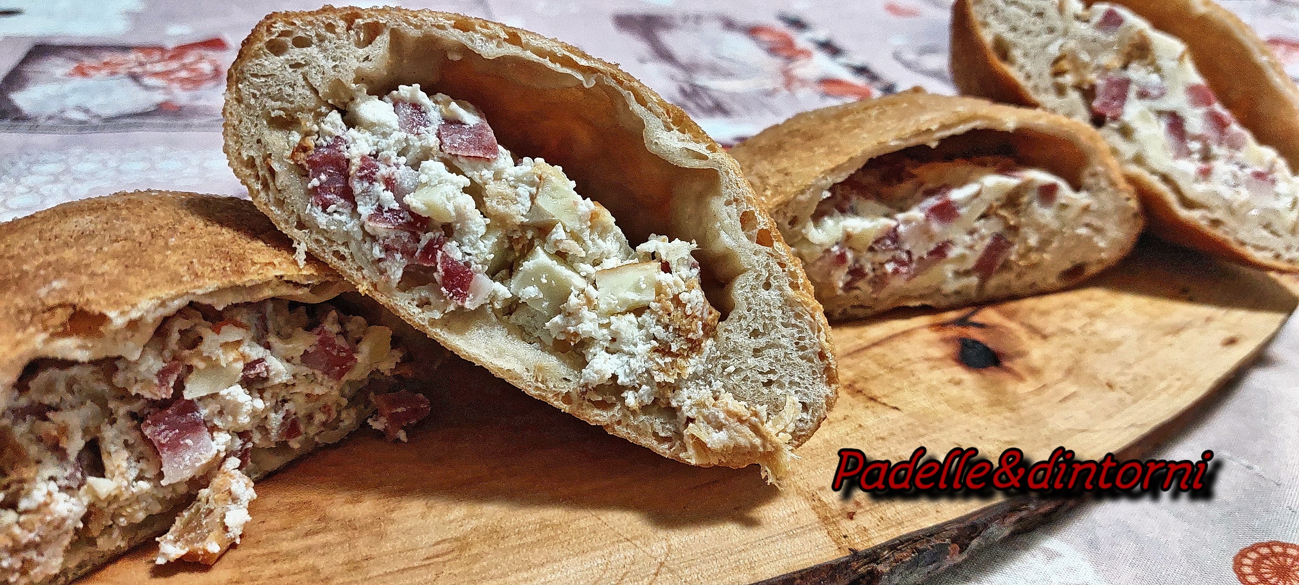 Nella mia esperienza lavorativa nella ristorazione va aggiunto anche una decina di anni nella produzione di prodotti da forno. Parlo di biscotti, torte, focacce, taralli e pane. Non credo di aver affrontato l’argomento a parte delle tigelle, per ovvi motivi.. proporvi piatti per eventi e feste. Ma in questo caso ho pensato che, appunto per eventi buffet ci possono essere delle eccezioni e quindi possiamo implementare ed alzare un attimo il livello delle preparazioni usando anche un pochino di panificazione. Tutto molto easy, con impasti diretti senza lievito madre e compagnia, perchè non tutti hanno il tempo e il posto per poter gestire certe lavorazioni. Faccio un esempio, da anni mi gira per la testa di fare il panettone. Logisticamente parlando vuol dire che per 3 giorni la cucina di casa diventa off limits a causa di temperature, lievitazioni e raffreddamento appesi al contrario dei panettoni, quindi se non voglio essere accompagnato alla porta di casa dalla mia consorte sarà meglio che questa idea me la dimentichi velocemente. Quindi si va sul semplice per un classico della Toscana e dell’Umbria: la schiacciata coi ciccioli rivisitata a calzone fritto.