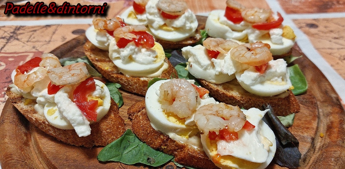 Un altro Pinchos per le vostre apericene. Questo è un attimino più “complesso” del precedente , ma solo perché dovrete cucinare le uova e i gamberi