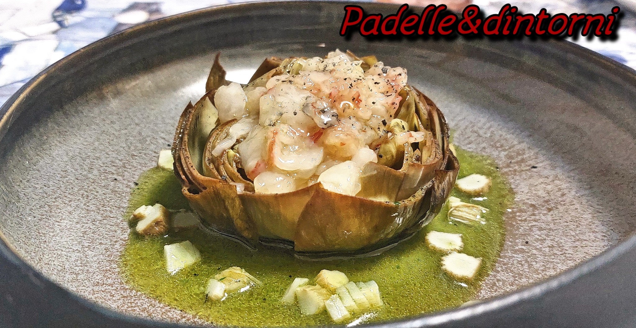 Questa preparazione nasce da una una cosa vista su un social a cui ho deciso di dare una consistenza e un sapore completamente diverso da quello che avevo visto. Praticamente la cottura era si in diciamo “bianco” e la tartare era di capesante. Il taglio del carciofo era per verticale , invece ho voluto ricordare il “fiore della giudia. Il risultato devo dire che basta la foto .. per il resto basta riprodurlo.
