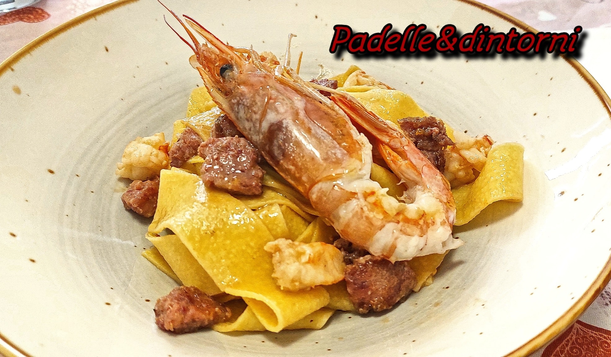 Nel frattempo prendete i gamberi e tagliateli a pezzi grossolani. Lasciate interi i gamberoni.