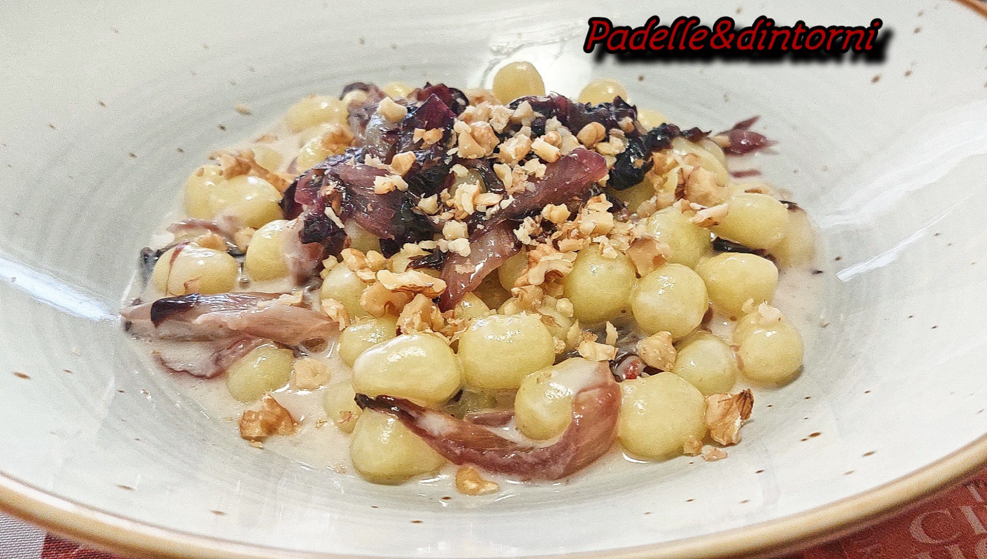Iniziate a saltare gli gnocchi acggiungendo una parte di radicchio stufato. Non fate rapprendere troppo la crema di taleggio, deve rimanere bella morbida.